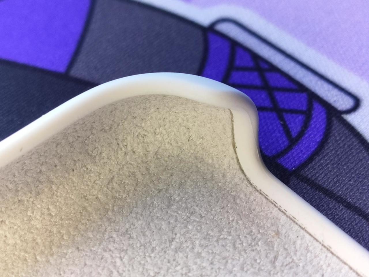 再来看看细节,整机的边缘就像钱包一样,做了缝线处理,另外边缘也做了封胶处理