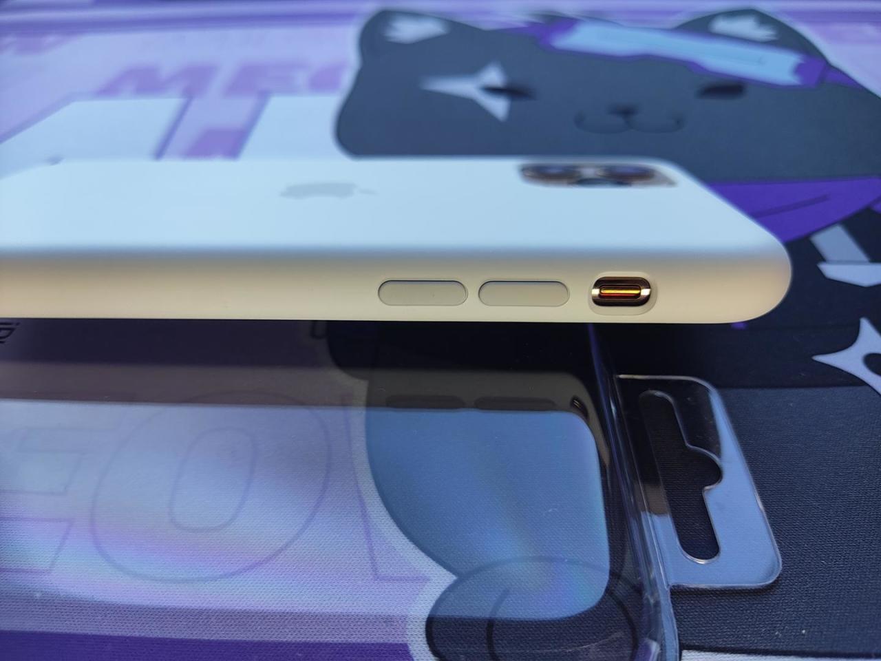 不过好在做工没有像包装盒一样廉价,11Pro的硅胶选用的也是偏硬的硅胶,并且logo也是烫印上去的