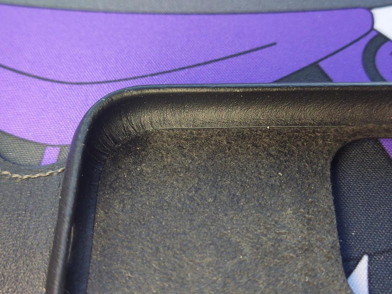 按键方面采用的应该是拼接工艺,按键的硅胶更硬,背面封边则是一体植绒,这点比皮革的好