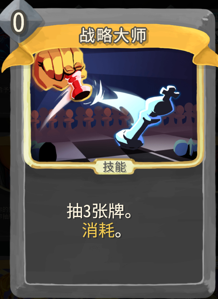 早有准备想必大家应该不陌生了,弃牌流的核心运转之一。这里重点说说无色卡里面的战略大师,0费抽三张牌,升级之后抽4张,自带消耗,这张卡可以抓一下,升不升级就看卡组运转端是缺抽3还是抽4了,一般不用升级。