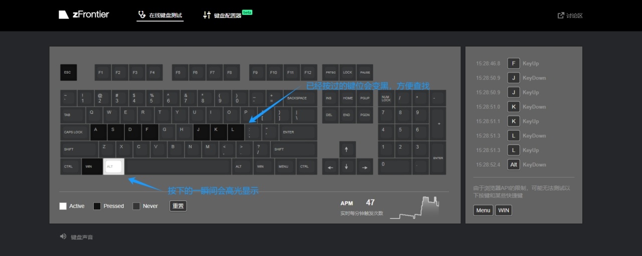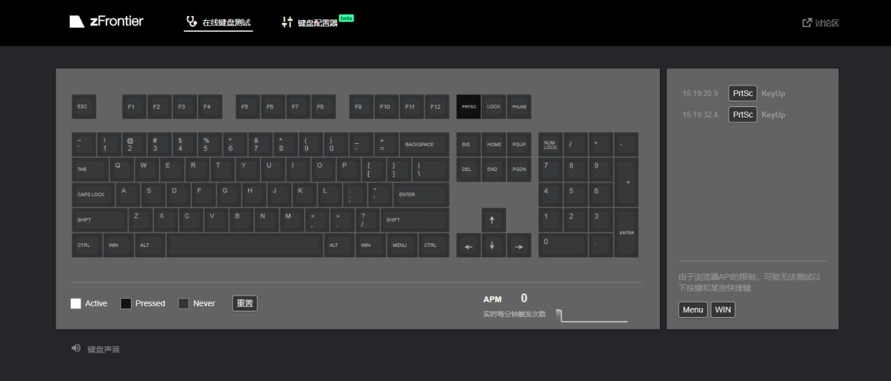 网址:https://www.zfrontier.com/lab/keyboardTester
