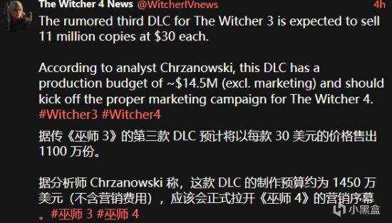 2月7日消息,波兰Noble Securities知名分析师马特乌什·赫扎诺夫斯基(Mateusz Chrzanowski)发布预测报告,称《巫师3:狂猎》全新大型DLC售价或达30美元,折合人民币约200元左右,这一高价预测瞬间引发全球《巫师》系列粉丝热议,成为游戏圈近期焦点话题。