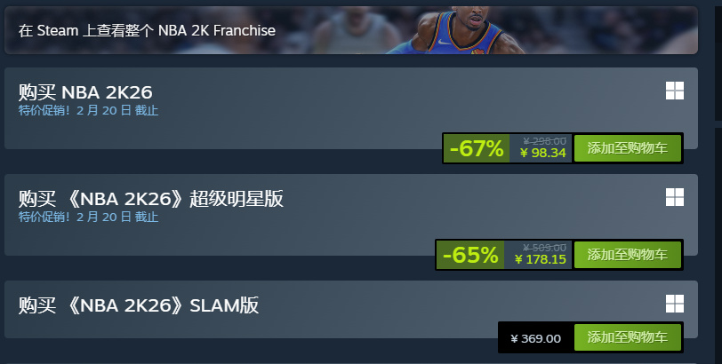 2k26再次打折,抓紧入手迎接全明星周末吧!