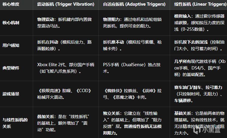 这个点很多百科只是粗略提了一下,甚至混淆了握把震动 (Rumble) 和 扳机反馈 (Trigger Feedback) 的概念。