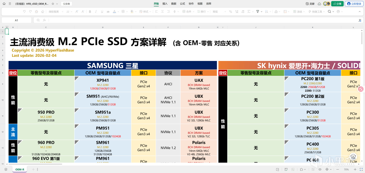 在线表格链接如下,衷心感谢SSD仙人的辛勤修订维护,以及无私的共享精神: