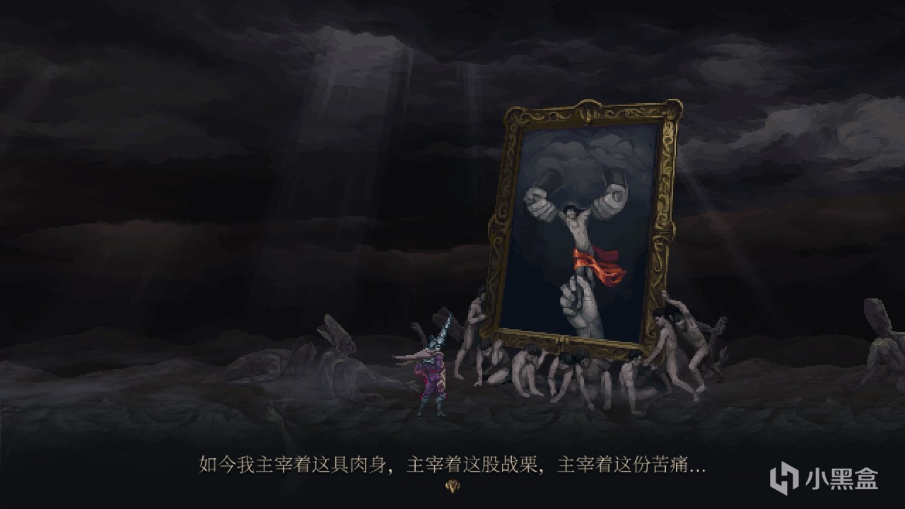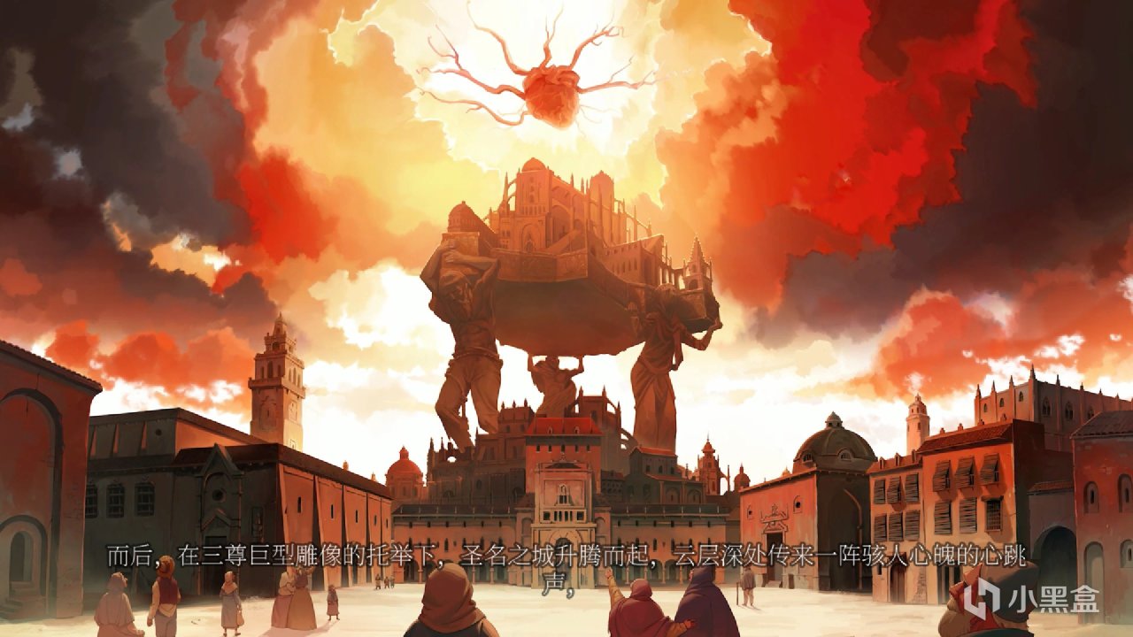 坦白說這種類魂的敘述並非我的心頭好,但哪怕你當它的劇情不存在,僅看美術風格和主線的少量信息也不會讓你的遊戲體驗有什麼減損,而這種遮遮掩掩的感覺也確實很契合宗教主題自帶的神祕光環。
