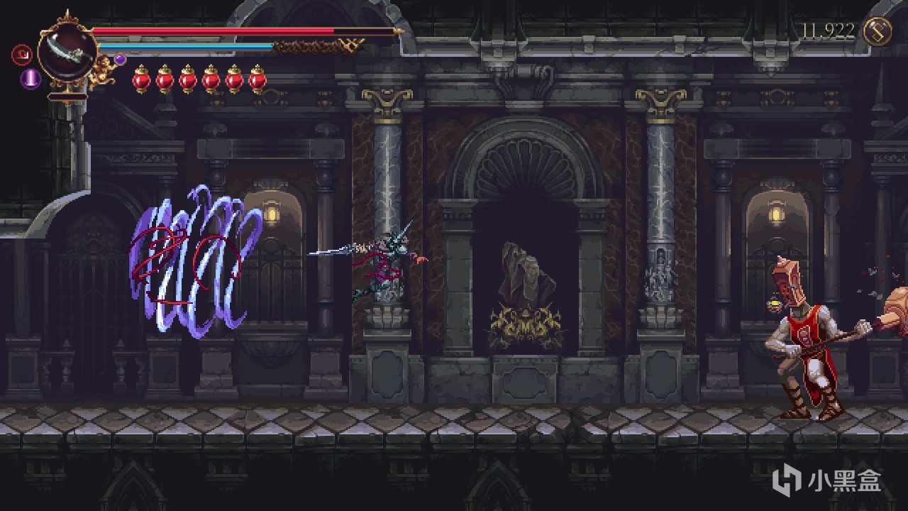 相比於前作和其他類銀河惡魔城遊戲,《神之褻瀆2》做了一個非常有意思的設計——不同的武器各自綁定了一個獨特的跑圖能力,例如雙劍可以通過攻擊特殊的雕像實現位移,鏈錘可以擊打場景中的大鐘激活機關,血刃可以通過下落攻擊打破屏障等等。