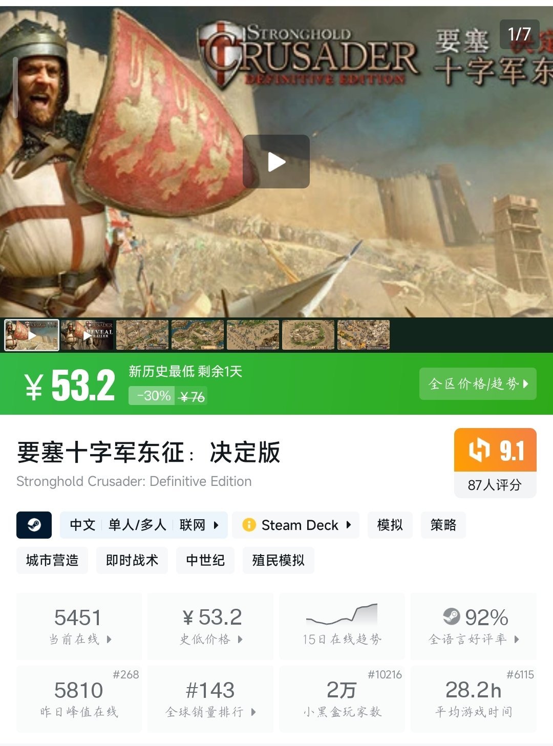 2、《要塞十字军东征:决定版》【仅剩1天】
