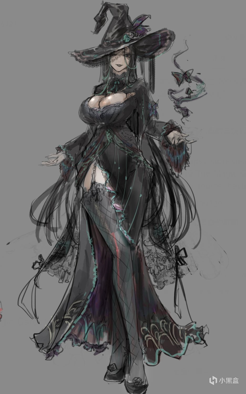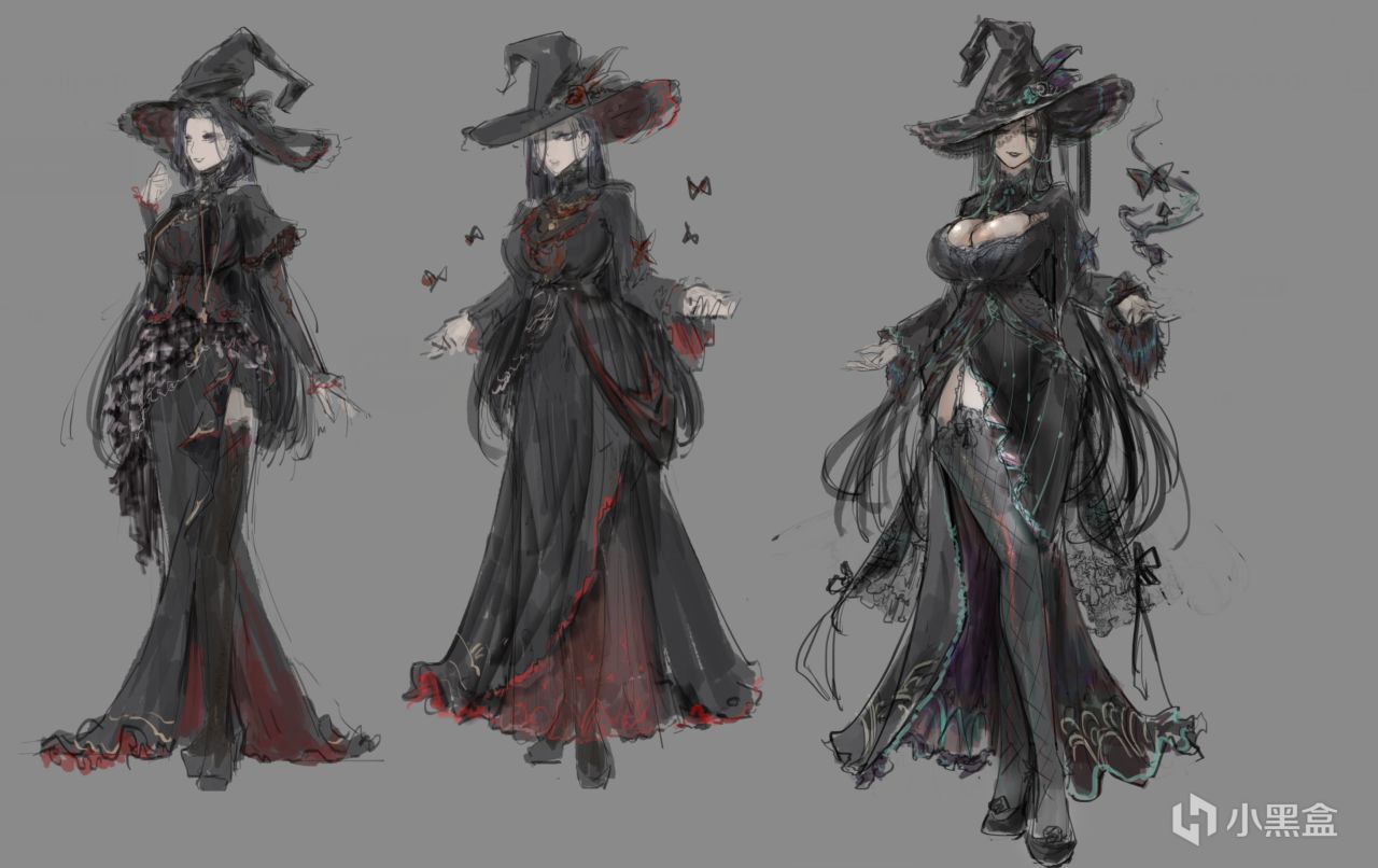 今天给大伙看看一个正在绘制的新人物哥特魔法老师-黑琳 的草稿