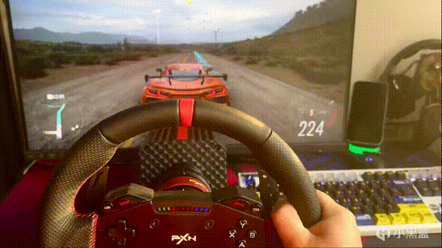 首先是《神力科莎》,该系列向来以拟真赛车模拟器著称,对方向盘设备的精确度和响应速度要求极为苛刻。而我这套莱仕达 VD6 虽然官方的定义为“入门进阶款”,但是其基座的直驱电机 6 牛米的基础扭矩加上 7 牛米的峰值扭矩,带来的力反馈非常强劲。弯角的路肩或失控滑移,都会通过 VD6 的方向盘的震动即时地传递到玩家手上,让玩家能够优先依据物理信息再结合视觉,更早地做出修正动作。