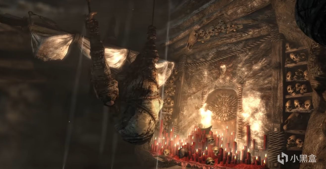 也许是为了让玩家形成强烈对比,游戏一开始主角劳拉就被暴风雨卷到邪马岛,并被打晕带到一个酷似食人魔洞穴的地方吊了起来。周围尸骨成群,鲜血布满了整个洞穴。游戏给我的第一印象就是血腥恐怖且孤立无援。