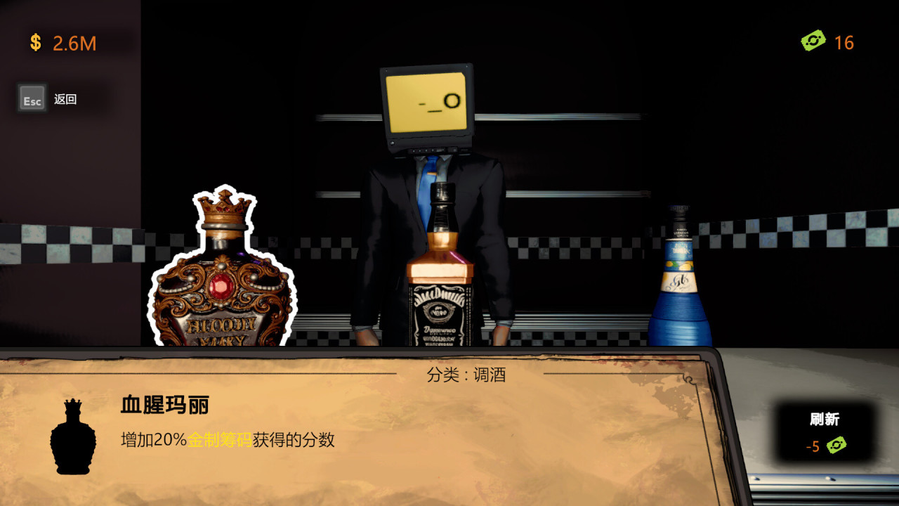 赚到的钱可以在吧台购买道具和升级能力,为了能更好的赚钱我们要构筑出适合我们的战术流派。