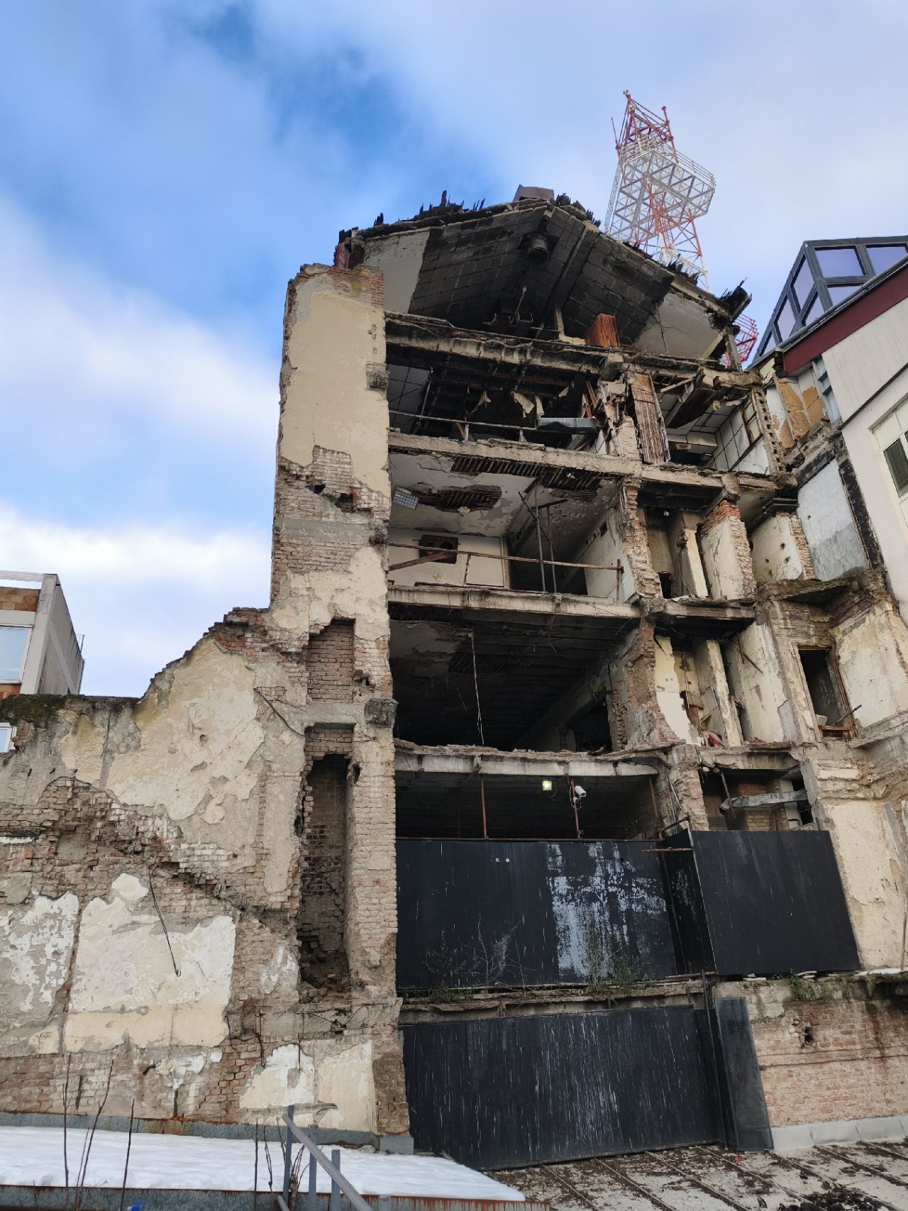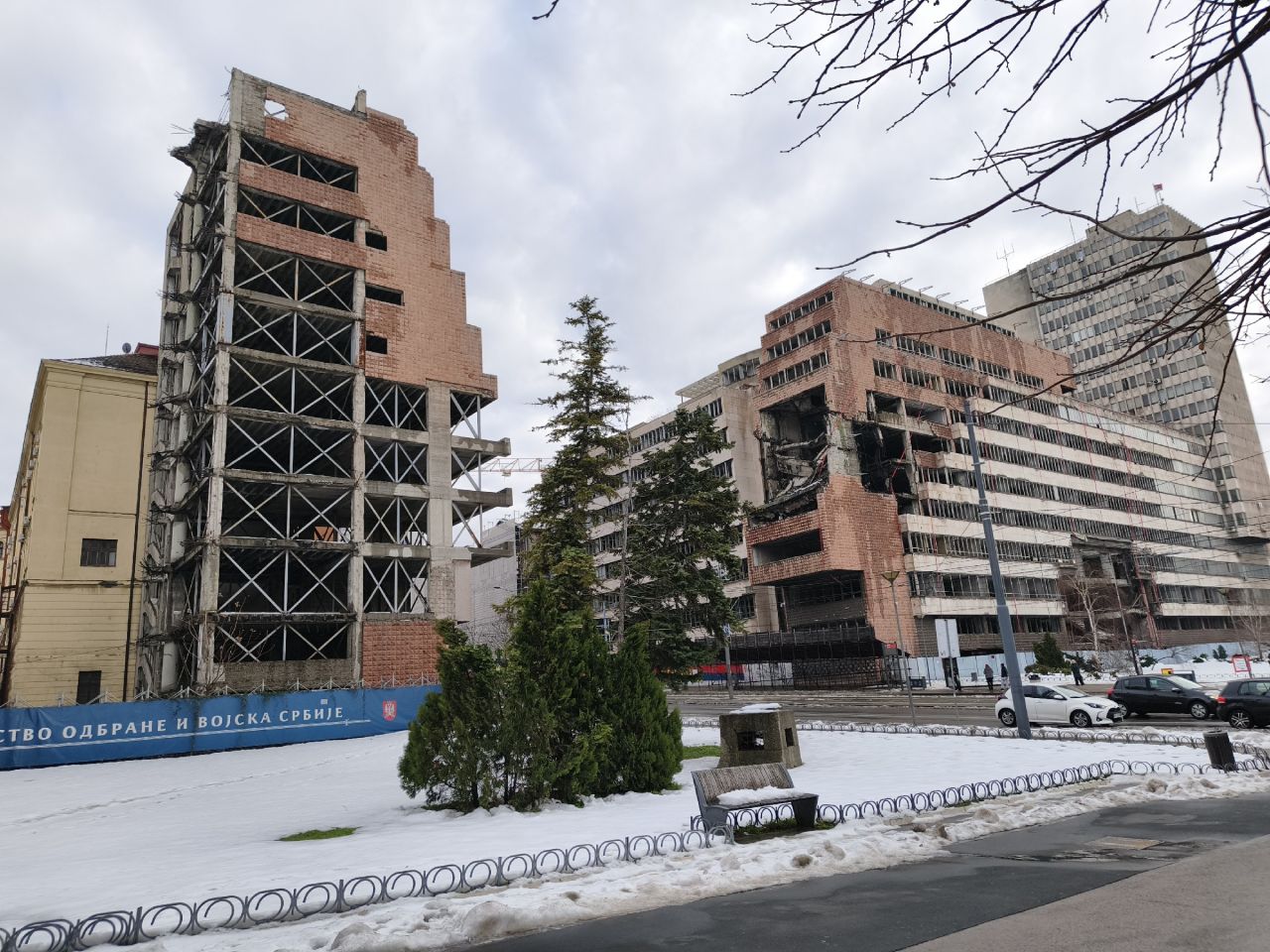 从要塞出来,继续坐公交去北约轰炸过的政府大楼和电视台。1999年,科索沃战争爆发,北约决定对科索沃局势进行“人道主义干预”,于是在3月24日至6月10日,北约在未经过联合国安理会通过的前提下对贝尔格莱德的多个目标发动长达78天空袭。
