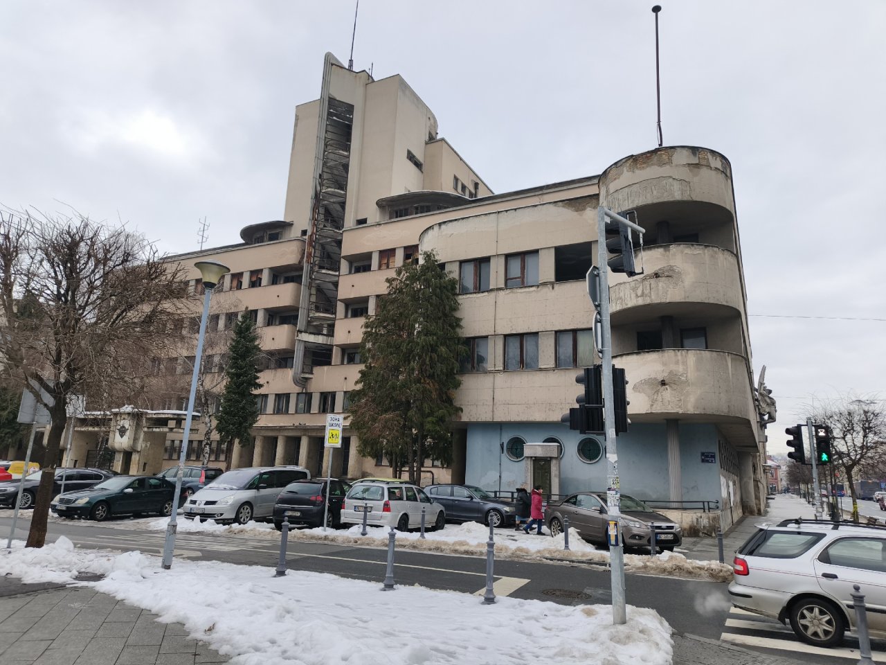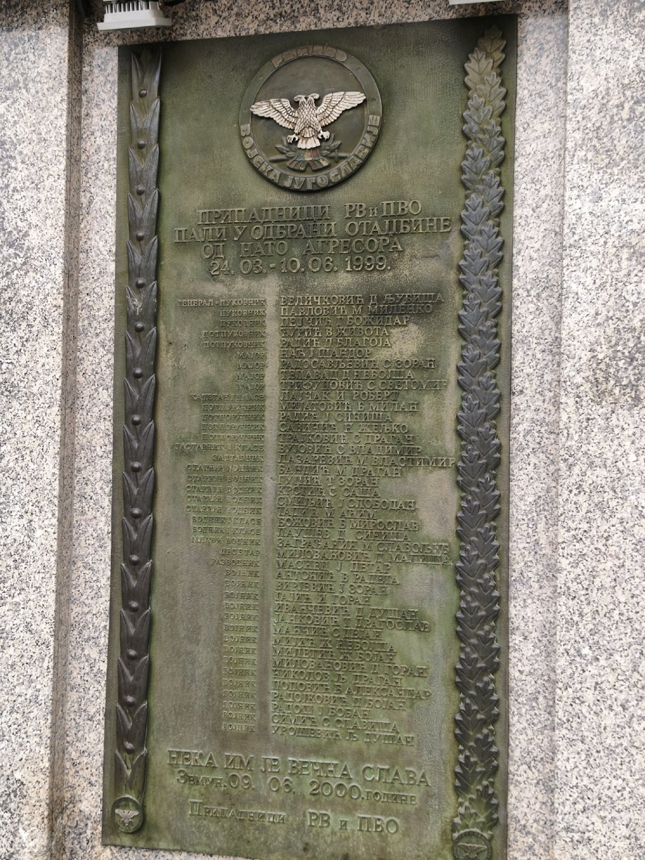 本来想去中国大使馆旧址,顺路路过了原空军司令部就下车看看。这个老空军司令部建筑很不错,正面有一尊伊卡洛斯雕像,但是在1999年北约轰炸中受损,至今仍未修缮并重新使用,就像城市的疮疤一样。