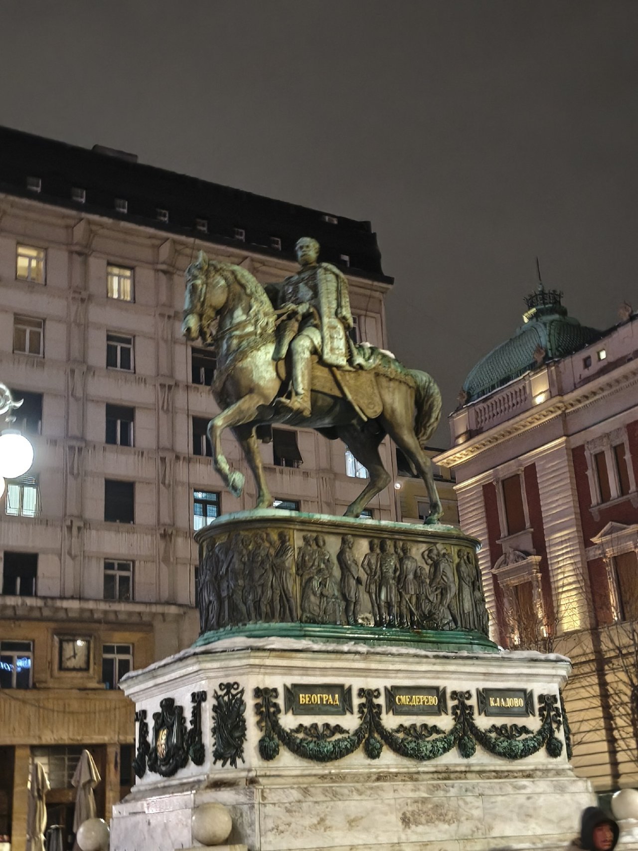 共和国广场中心那个骑着马的铜像是近代塞尔维亚国家奠基人米哈伊洛·奥布雷诺维奇亲王。19世纪,塞尔维亚摆脱奥斯曼土耳其控制建立了独立国家。