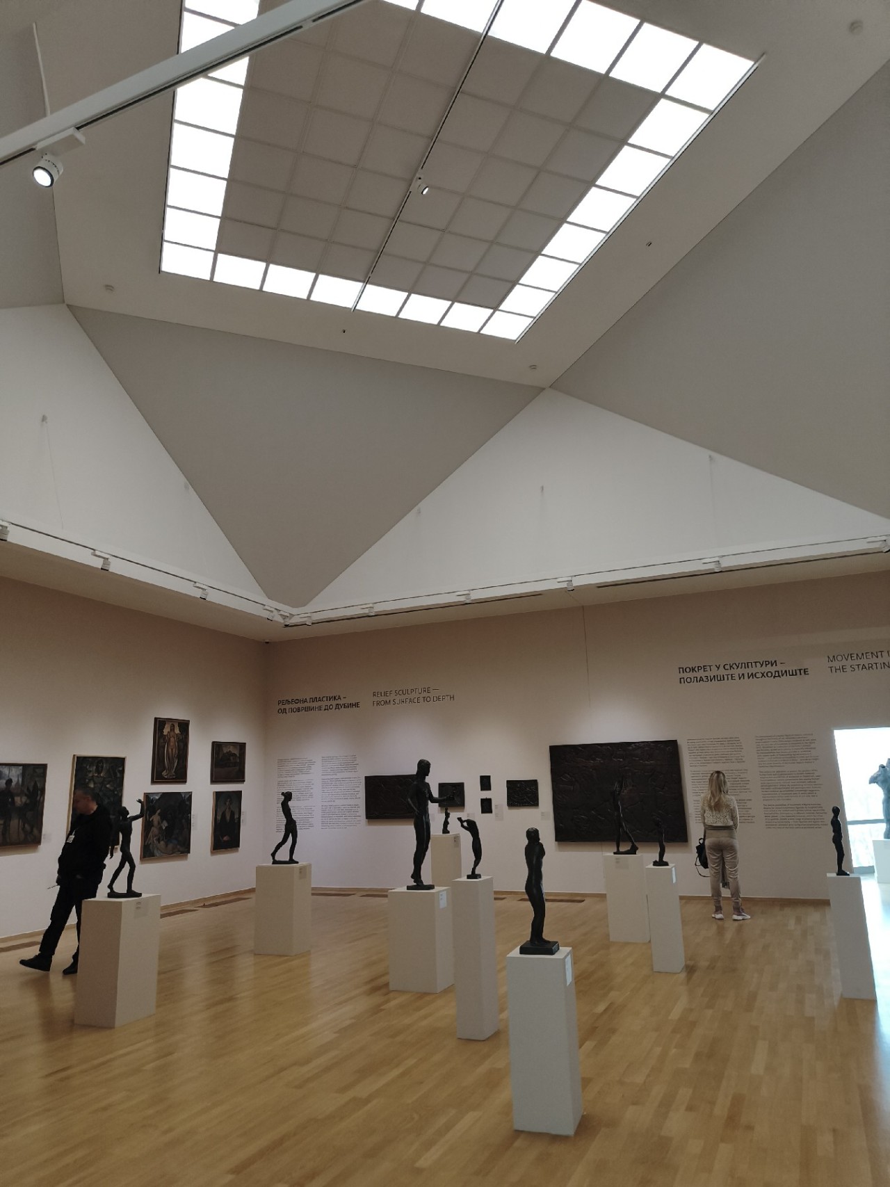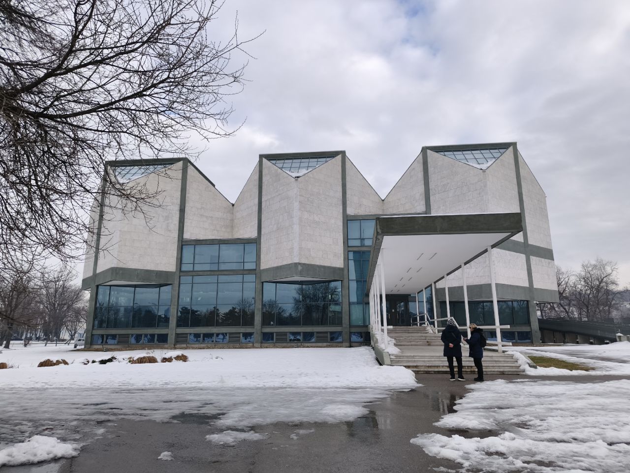 再走一段路,多瑙河与萨瓦河汇合处是贝尔格莱德当代艺术博物馆。博物馆建于1965年,建筑本身极具辨识度,由多组白色几何体量组合而成,被认为是南斯拉夫现代主义建筑的代表作。当我进去参观的时候,工作人员告诉我可以现在可以免费参观。一楼是奥尔加·耶夫里奇的雕塑展。她是前南斯拉夫最重要的现代主义雕塑家之一,在欧洲当代雕塑史上占有独特位置。其他地方的馆藏以20世纪至当代的塞尔维亚与前南斯拉夫现代艺术。
