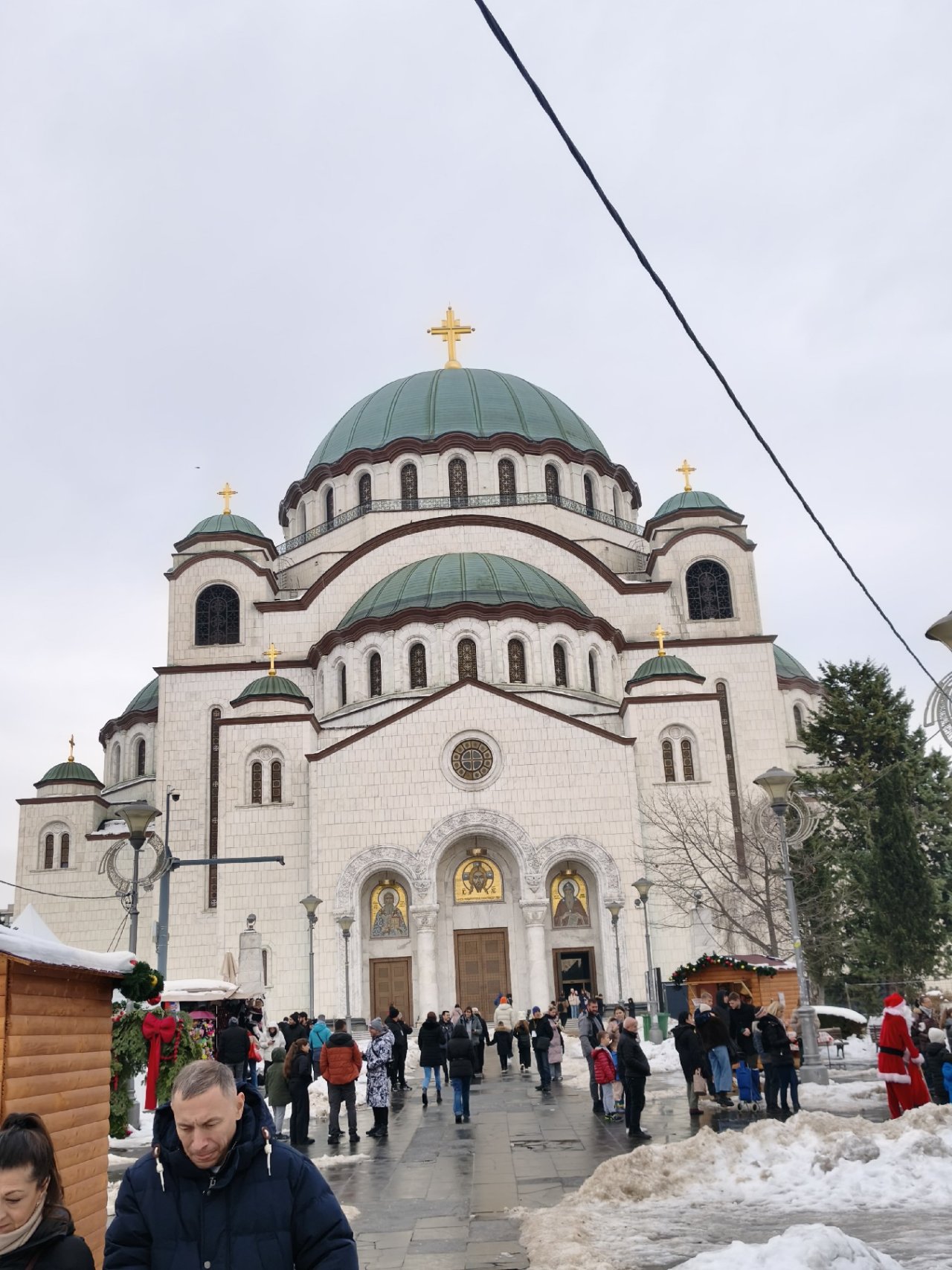 接着去圣萨瓦大教堂。该教堂为纪念塞尔维亚东正教的奠基人圣萨瓦而修建,16 世纪,奥斯曼帝国统治时期,土耳其总督下令在此焚烧圣瓦萨的遗骨,后来在这重新修建了这个拜占庭风格的东正教堂。武契奇在听说圣索菲亚大教堂被埃尔多安重新改为清真寺之后,宣布要重新修建一个和圣索菲亚大教堂同样金碧辉煌的拜占庭式东正教堂,弥补了我没有在伊斯坦布尔看圣索菲亚大教堂的遗憾。