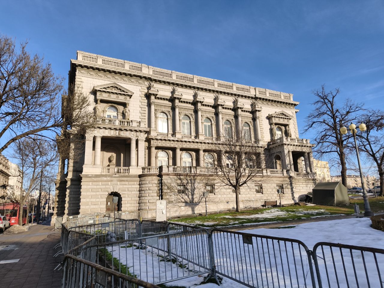 步行一公里多就到联邦大厦(塞尔维亚宫)。这里原名南斯拉夫联邦大厦,是南斯拉夫时期最具代表性的国家级建筑之一。大厦始建于1947年,1959年完工,整体采用现代主义的建筑风格。冷战时期,这里是联邦政府和重要外交活动的核心场所,铁托多次在此接待外国领导人。南斯拉夫解体后,大楼更名为“塞尔维亚宫”,现为塞尔维亚政府部委办公地。这里并不对外开放,所以我拍过照以后就很快离开了。