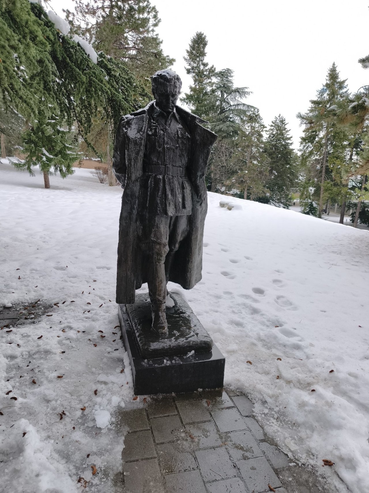 于是两个半小时之后我到了位于贝尔格莱德南郊的阿瓦拉山(Avala)。到达山脚的时候,前几天厚重的积雪尚未化开,整个山上几乎没有一个人。其实走在冰雪交加的山路上的时候我有些后悔到这里了,但是既然来都来了不如上去看看,于是我只好深一脚浅一脚地缓慢前行。