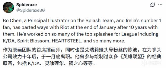 《英雄聯盟》拳頭遊戲首席美術插畫師陳波,通過個人領英發文正式宣佈離職,結束了長達十年的任職生涯。作爲團隊中極具影響力的中國籍藝術家,他的離職引發全球玩家熱議,其設計的多款熱門皮膚更是被網友爭相回顧,成爲一代人的青春記憶。