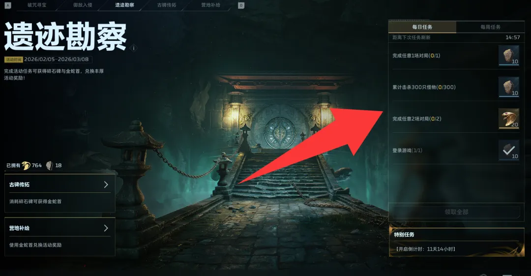 新版本许多活动都存在联动,首先你需要在遗迹勘察完成每日任务,如此每天产出30个石碑。不过活动长达一个月,就算开头有点浪费无所谓。