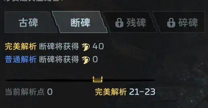 到了第二个难度“断碑”,需要让完美解析落点在21-23,需要如何采用方案?