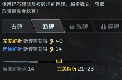 这样操作,确实获得了相应的金蛇,但无法触发完美解析。因为方案三:耗费14石碑,会让你获得12—16解析度。