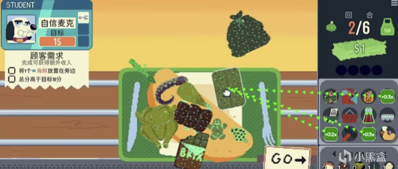 食材之间会互相影响:辣椒点燃一切、奶酪叠加倍率、相同类别触发连击。摆放位置决定得分高低——而且放下的东西不能再拿起来。