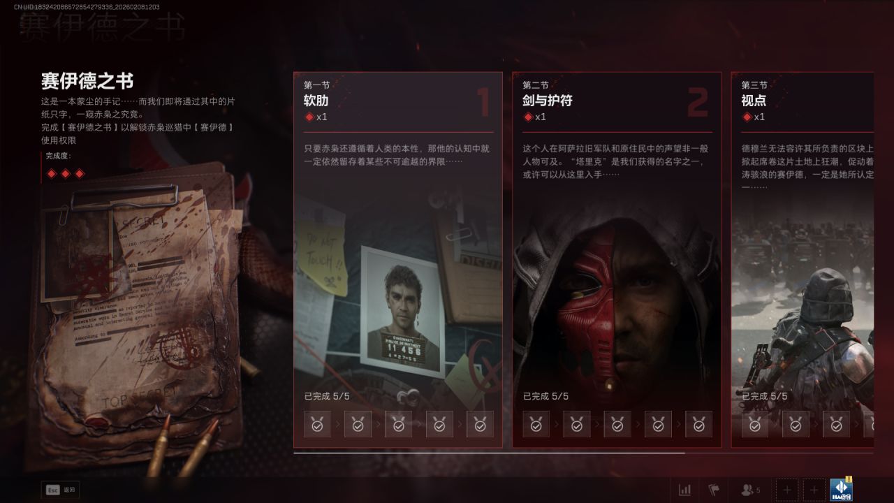 先聊赛依德之书,赛依德之书任务分四章,四个章节同时打开。只需要完成其中任意三章就可以解锁赛依德使用权。该任务普通模式下也可以做,小航母个人建议搭配3X3任务一起做。