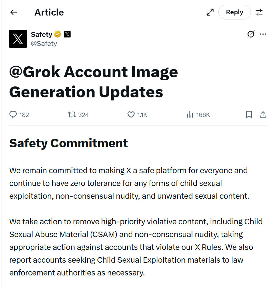 逼得 X 不得不站出來,宣佈採取措施制止 Grok 生成色情圖像。