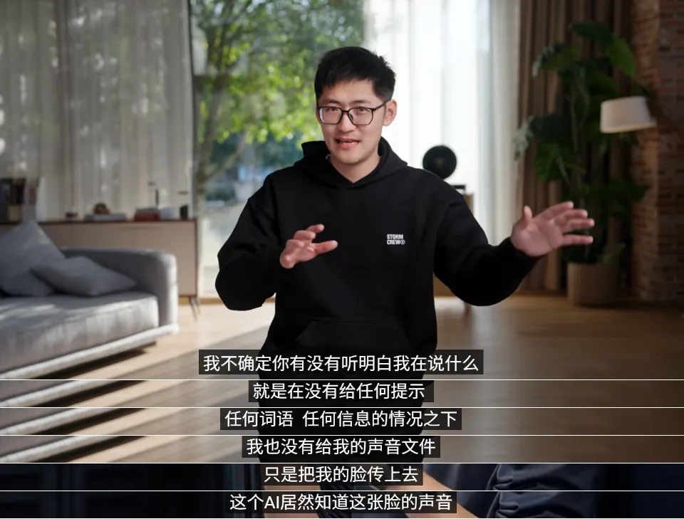 并且,Tim 特别强调,是在没有给任何提示、前置或者什么描述的情况下,模型看到是 Tim 的脸,就直接自动匹配了其声音。