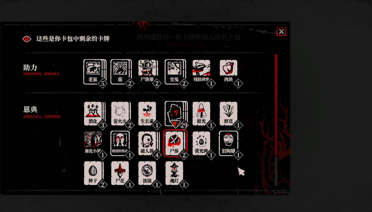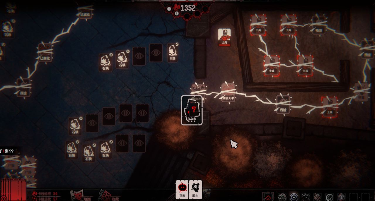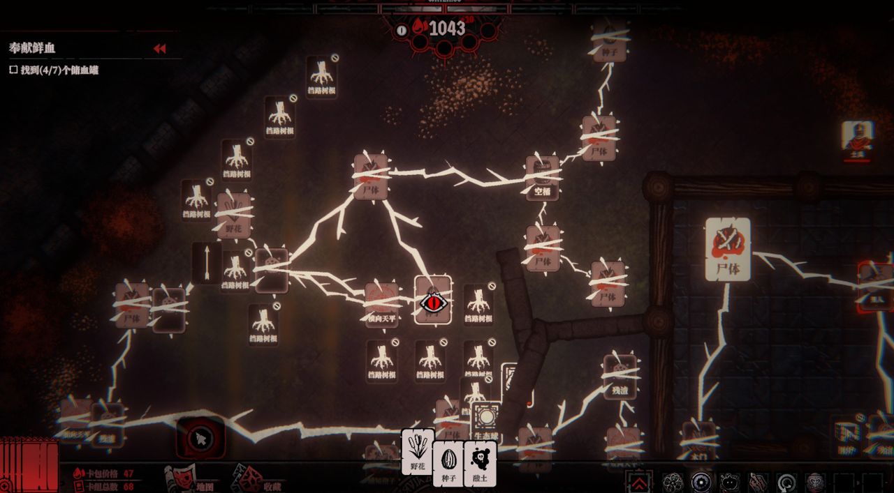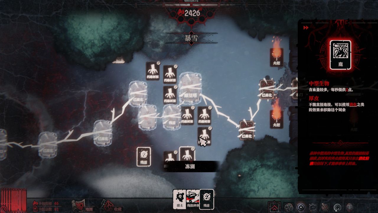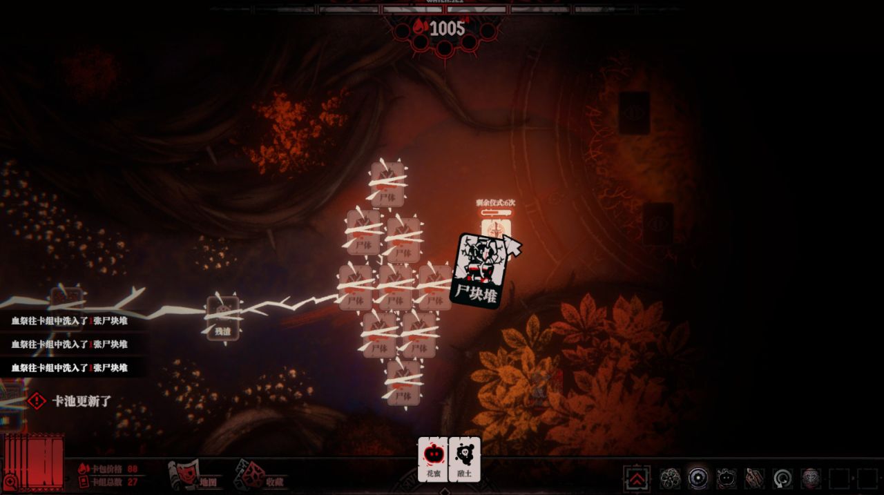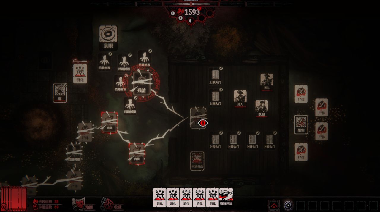 因为在你找到人类之前,为了继续前行,你只能将根须连接一些臭老鼠、腐烂的肉块、尸体、寄生物和残渣等,把这些价值不高的卡牌当作前进的垫脚石。