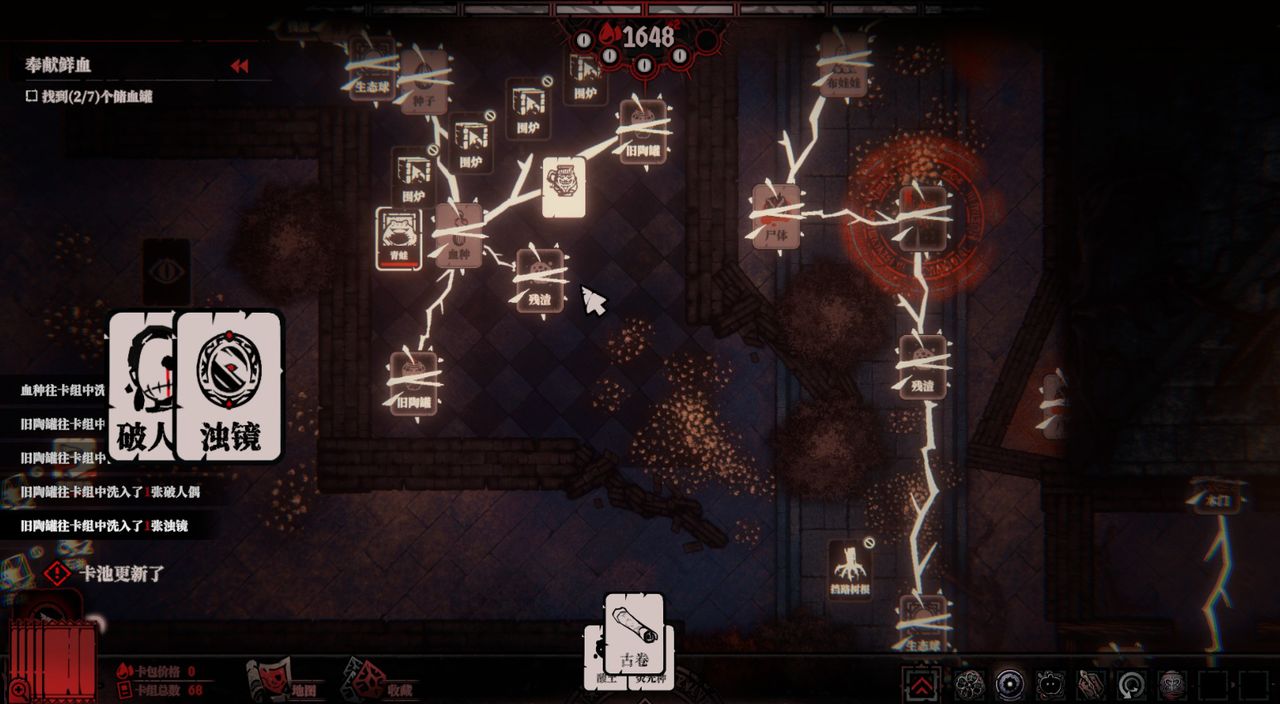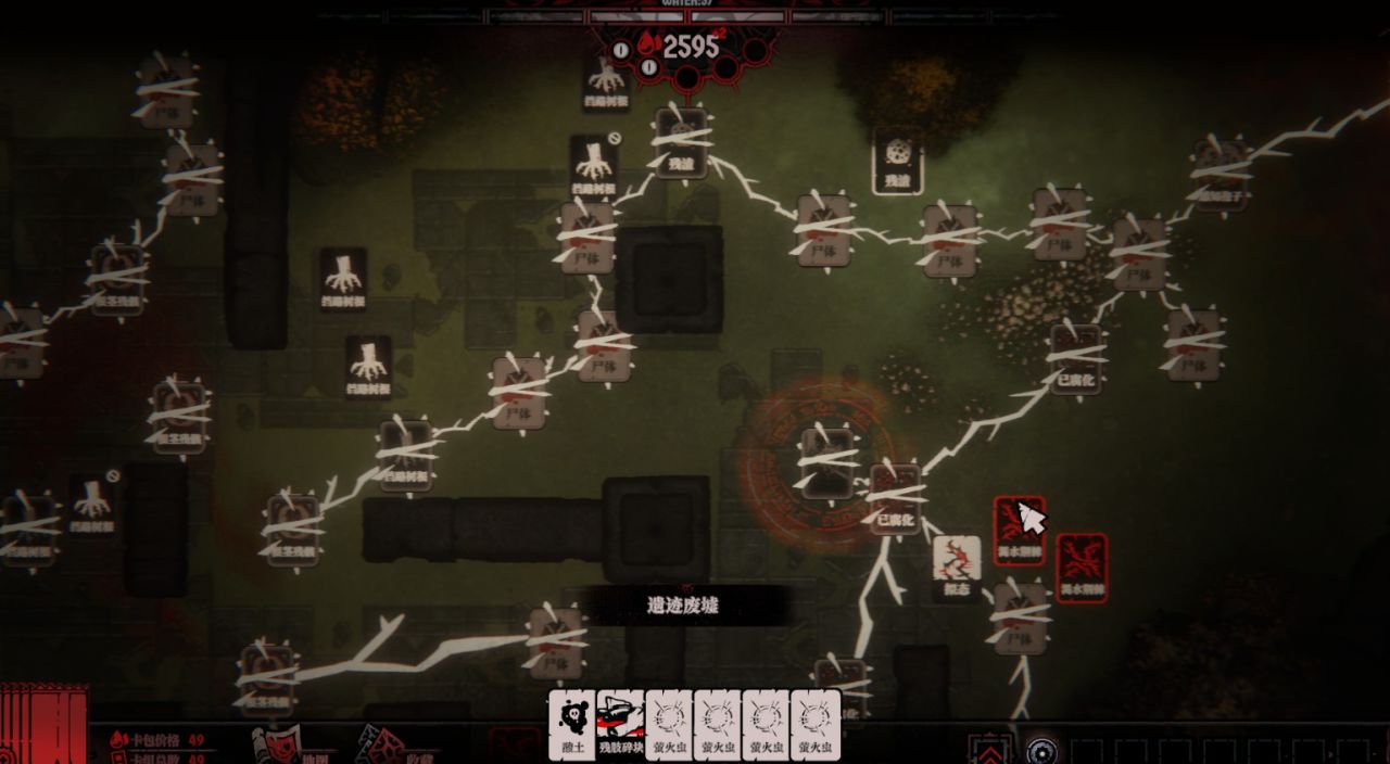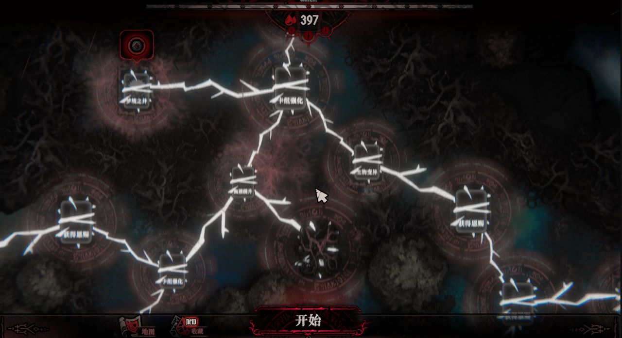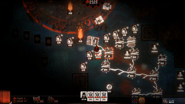 本质上,游戏内也包含较为丰富的卡牌构筑系统,但由于该作并非Rogue品类,也没三选一。想要在当前游戏局的卡包中解锁更多丰富的卡牌,就需要继续探索,与各种奖励点进行互动,如果实、祭坛、苗床等。
