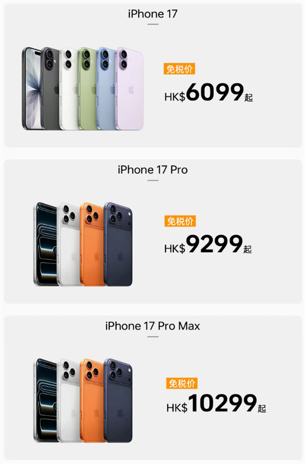 价格方面,以iPhone 17 256GB为例,官方售价为5999元,免税价为6099港元(约合5402元人民币),汇率折算下已较官方售价优惠近10%,具体售价受汇率波动影响,以现场公示为准。