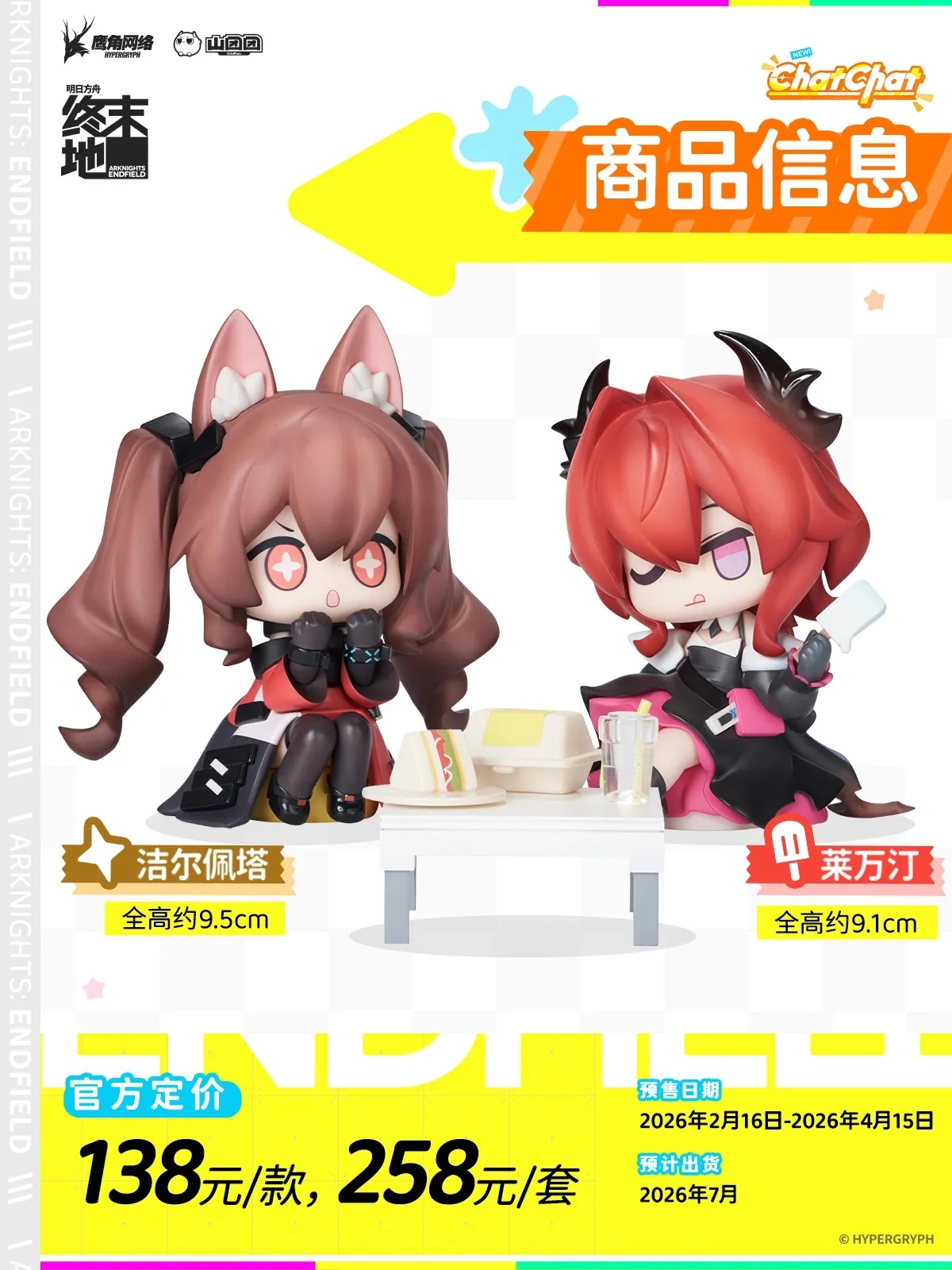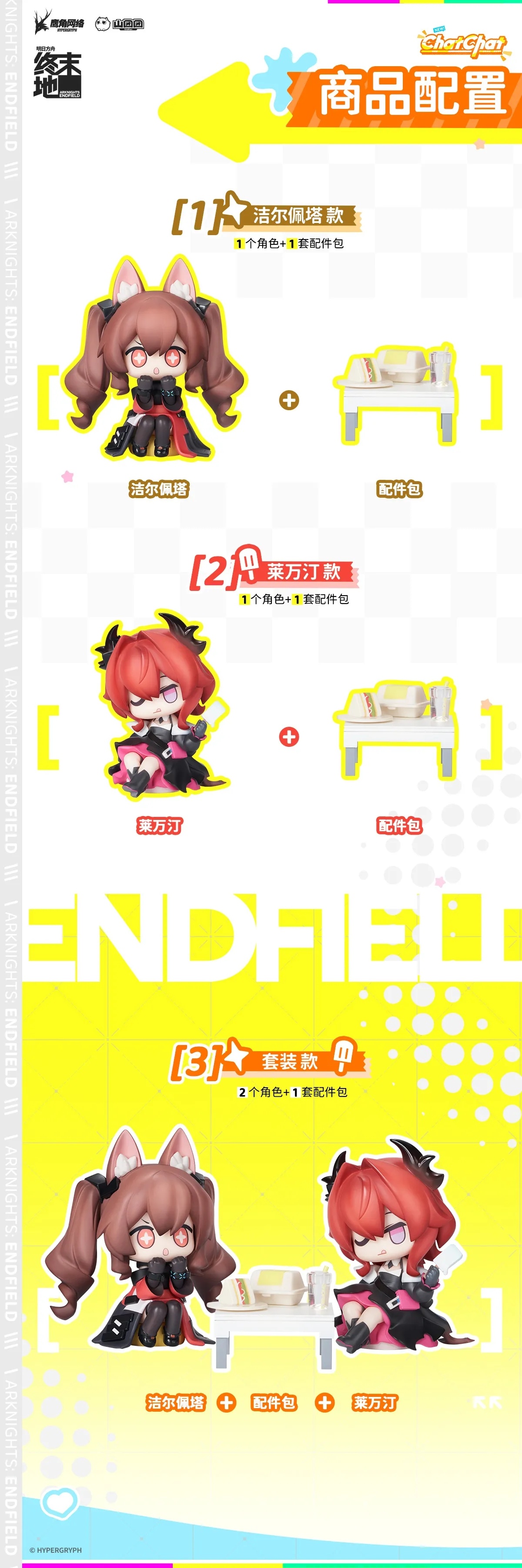 明日方舟:终末地推出ChatChat系列Q版手办,首发角色为洁尔佩塔、莱万汀: