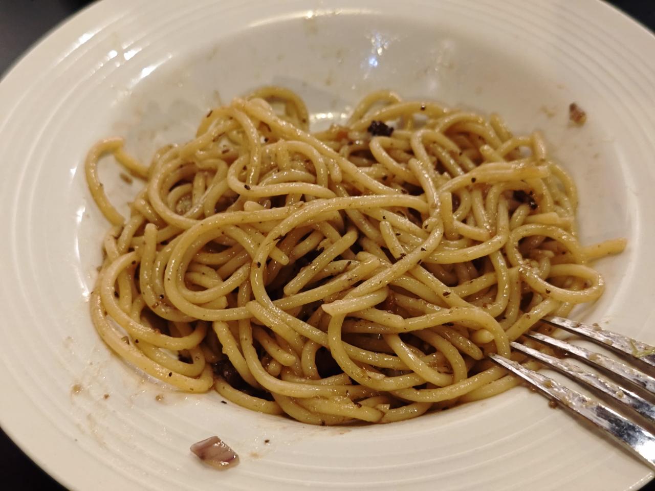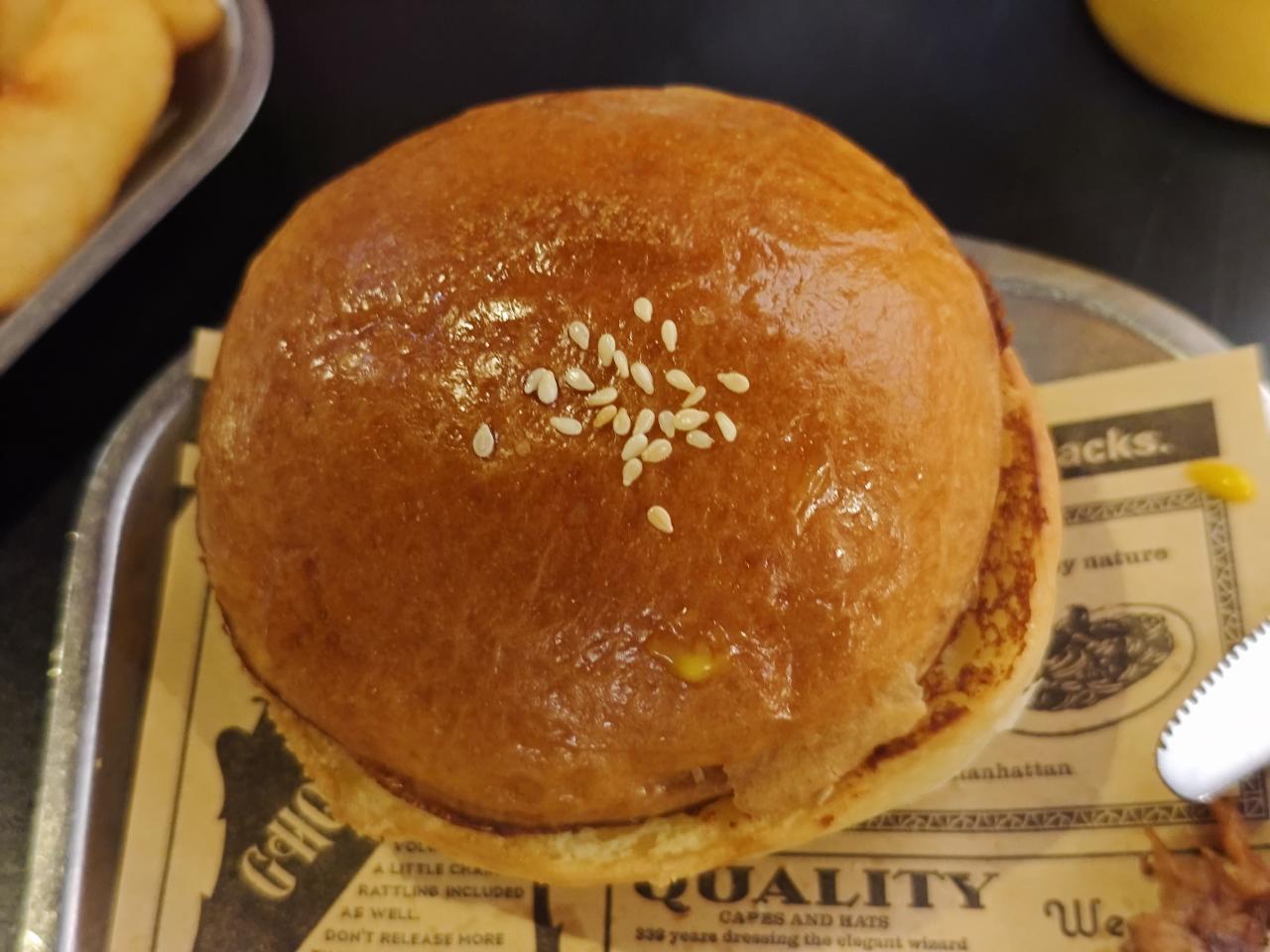 后续加了一份黑椒意面,可以说是非常的一般。完全就是意面稍微淋了一些酱汁,没有任何配菜。而且酱料给的比较少,整体吃起来感觉比较的寡淡无味。最后是我放到面包胚里当做一个配菜,和别的组成汉堡吃掉的,不过这样主食配主食的搭配吃起来反而比单吃要好比很多
