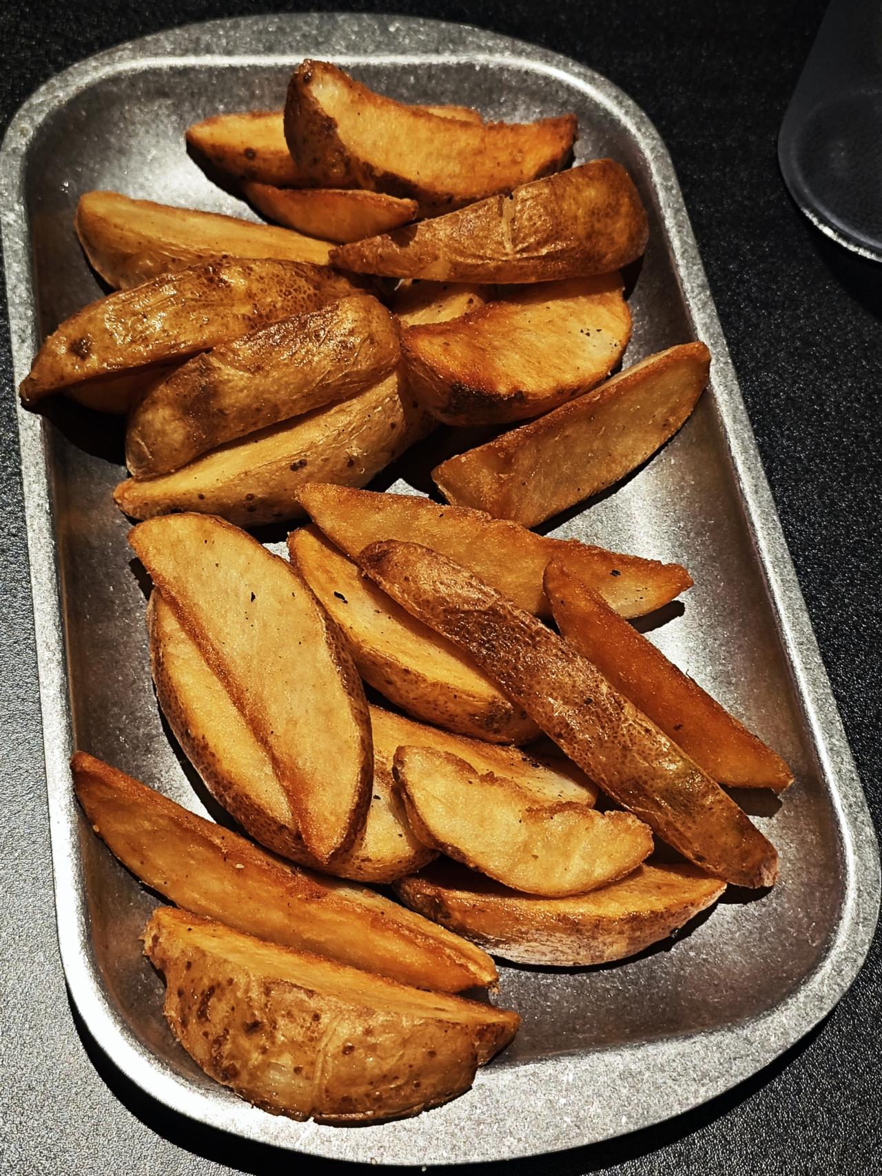 ✨薯角,是原切薯角,未去的土豆皮带来了更多的风味,新鲜现炸,小心烫口,外壳实质上是不太酥脆的,会有一点有点皮的感觉,软糯的内里会让人忍不住发出惊叫(其实是被烫的),一般