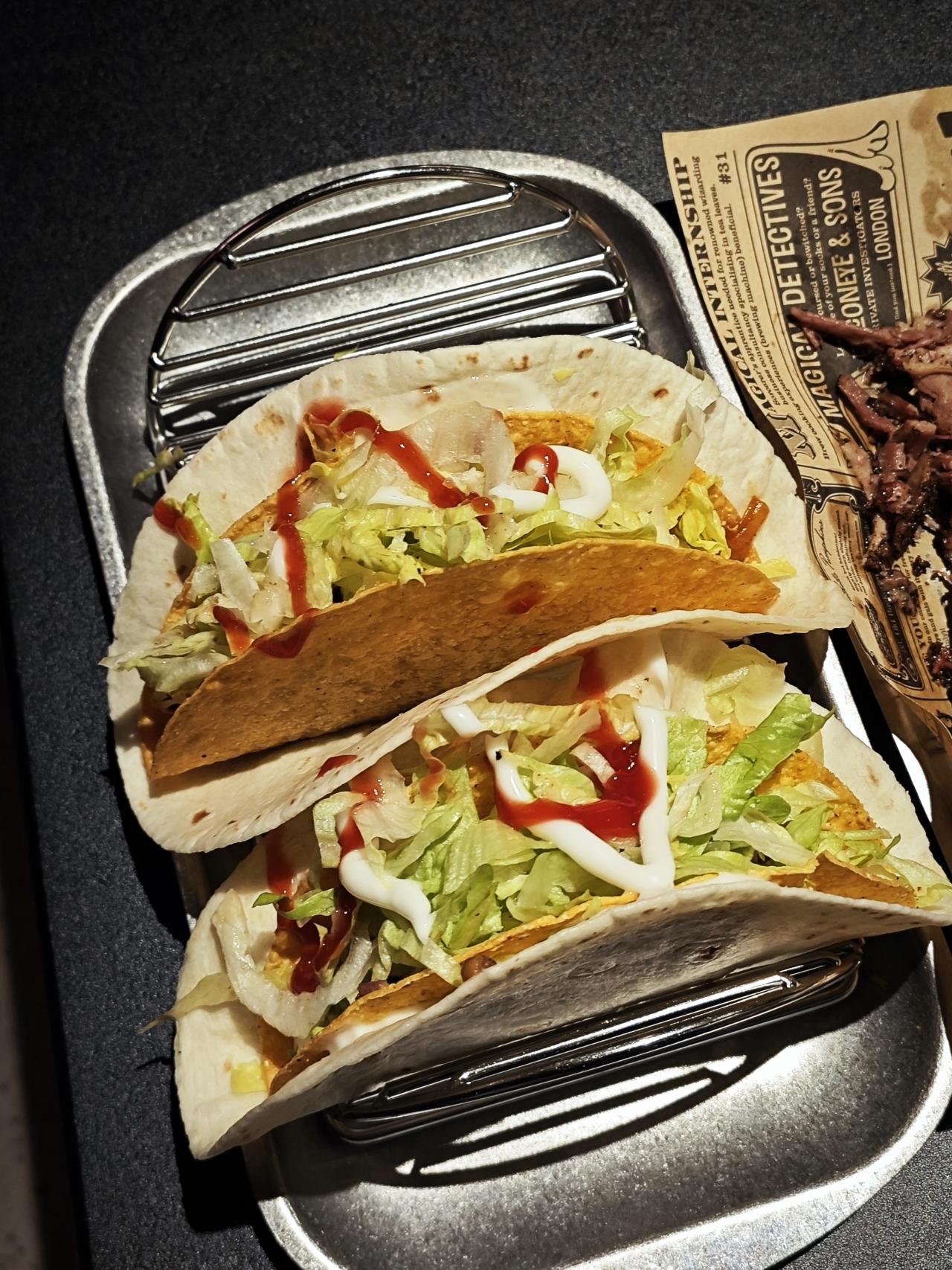 ✨tako,劲道的饼皮包裹着酥脆玉米薄脆,内含青红椒 丝,生菜和肉,整体口感层次挺丰富的,就是比较凉,介意的要慎重