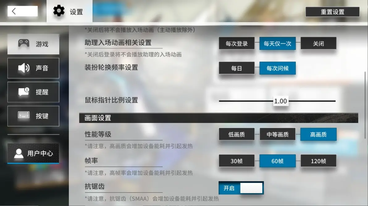 可以开启120帧+自定义按键+4K画质。