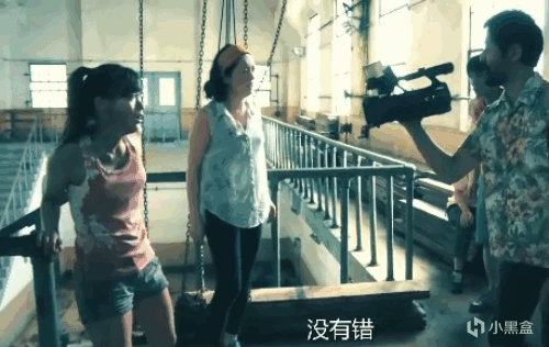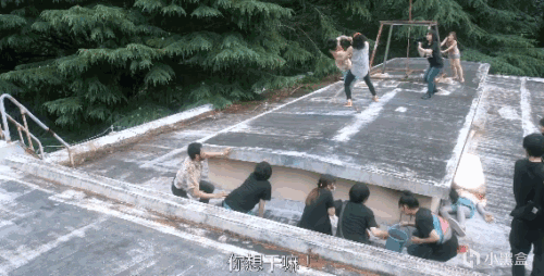 導演出現在女主身後,還在繼續拍攝女主的表情,女主被嚇得趕緊跑,衆人在後面追。
