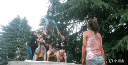 一段追逐戰後,大家走散了,女主被趕過來的男主救下。其中伴隨着女主浮誇的尖叫聲。