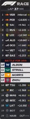 Lap16:維斯塔潘進站換上黃胎,出站後排在第二,拉塞爾超過樂扣上升到第四!