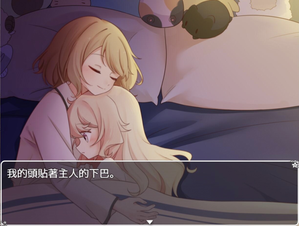 语句间的暂停让对话框一直在闪眼睛有一点不舒服,可能是哪个插件的优化问题游戏中还是有卡死的几率。简中和通关后CG鉴赏是我做的,豆乳也在积极的做日文版和英文版让中国百合走向世界。