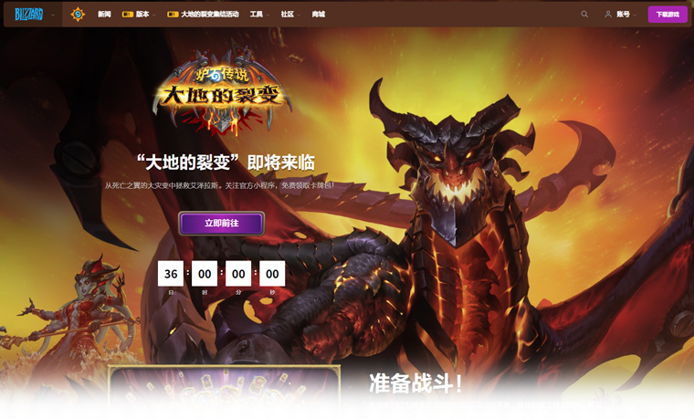 从2月10日至3月18日,访问我们的“大地的裂变”集结活动页面,参与《炉石传说》官方社区动员,协助集结巨龙军团,共同抵御死亡之翼的袭击。助力我们解锁所有巨龙军团,即可获得免费传说卡牌艾比西安以及两张异画卡牌末世特使!