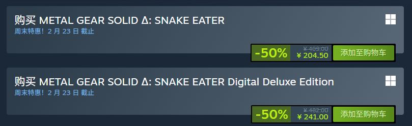 《合金裝備Δ:食蛇者》現已迎來 5 折新史低價!售價¥204.5。
