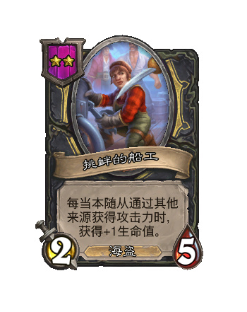 物色新人:在本局對戰中,酒館額外提供一個具有+2/+2的隨從。
