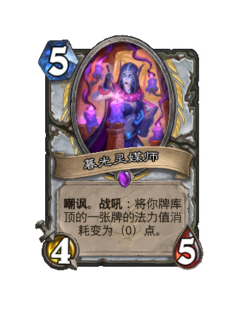 改動後:戰吼:將你牌庫頂的一張牌的法力值消耗變爲(0)點。
