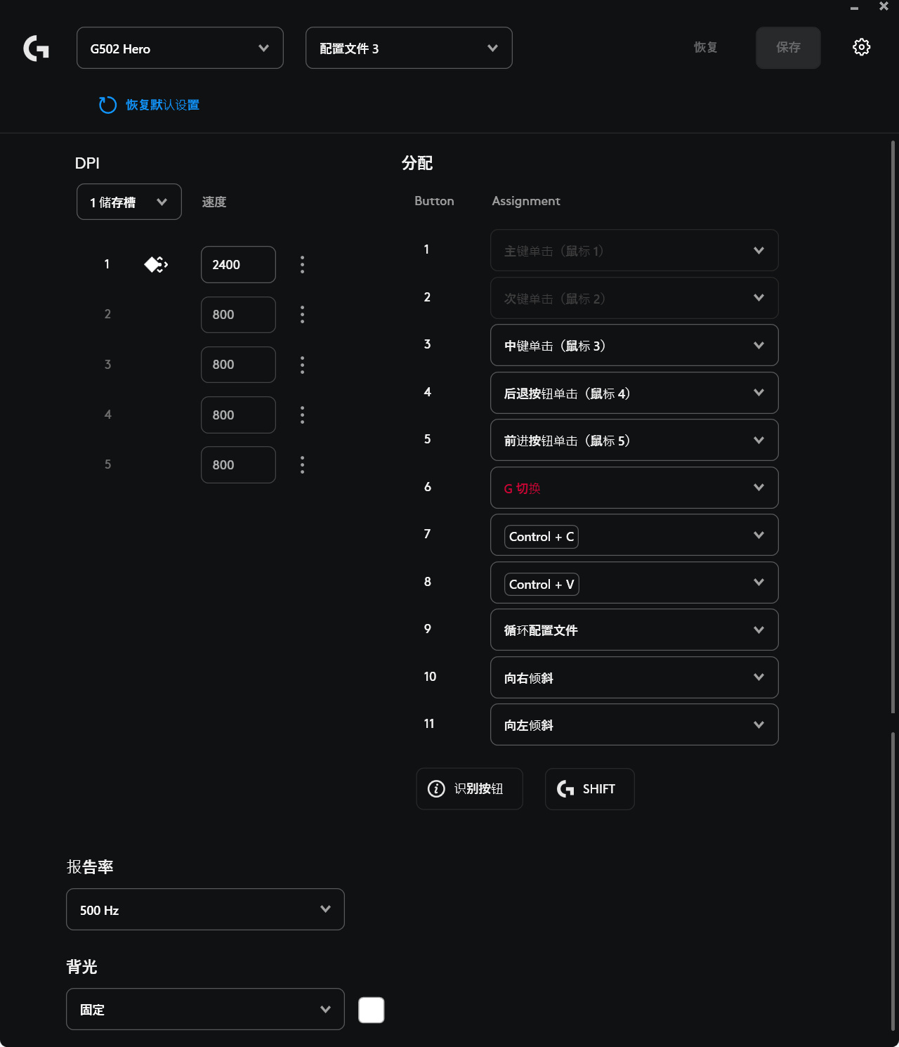作爲一款實用工具,OMM把調節核心功能做到了極致。界面簡潔到沒有任何花裏胡哨的元素,核心功能一目瞭然:DPI多檔調節、回報率(輪詢率)切換、按鍵自定義、基礎背光控制,還有設備配對功能。軟件最新版還支持雙設備配對和PRO X SUPERLIGHT 2等新型號。
