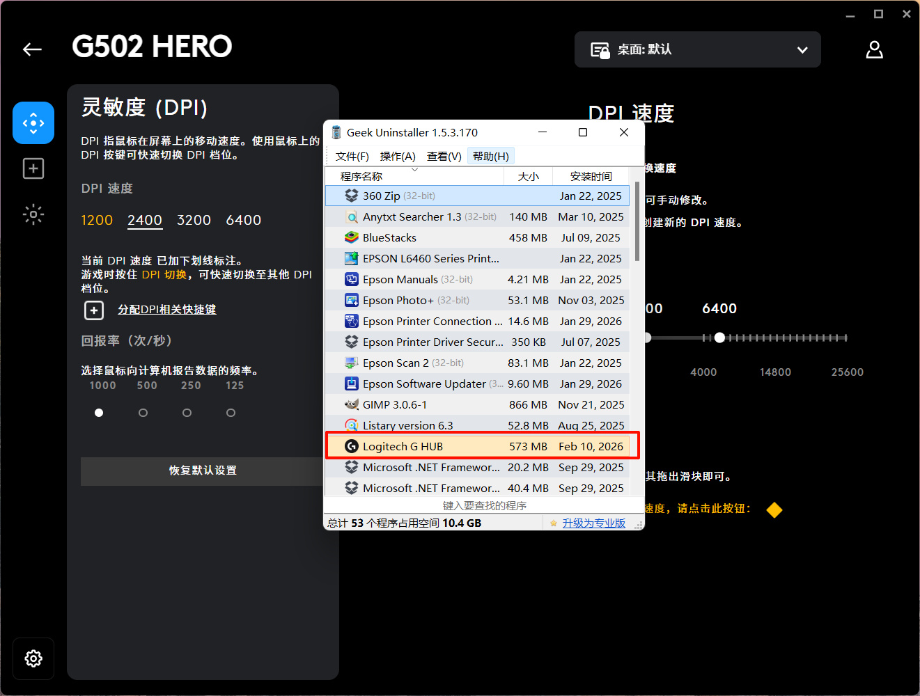 Tips:使用前還得先下載G HUB,在G HUB裏切換鼠標的配置文件板載模式,後續才能在OMM裏調節。建議開啓板載後直接用GEEK將G HUB卸載,順帶清理殘留。