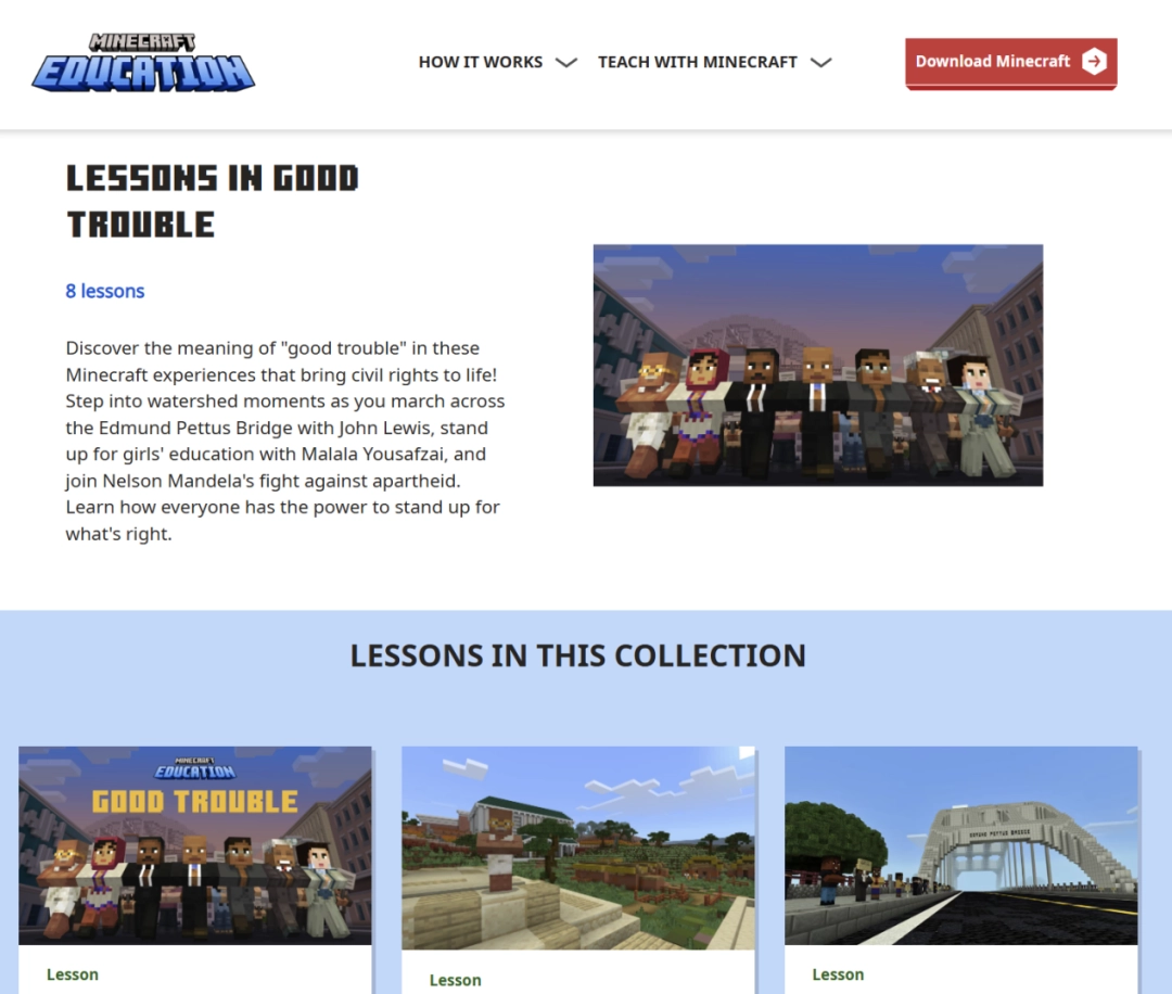 “想在現實世界中改變世界嗎?那就從《我的世界》開始吧!在免費的《Good Trouble》DLC中,探索全球民權運動,結識變革者,學習如何挺身而出、發出聲音,並共同建設一個更美好的世界。”